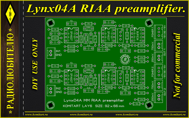 Lynx04 MM RIAA preamp V2 komitart projectLynx RIAA04V2 phono preamplifier. Принципиальная схема, плата LAY6 формата. Список элементов.